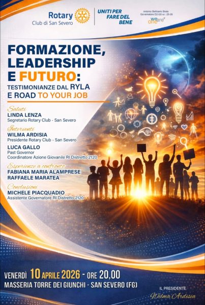 Il Rotary Club San Severo nasce nel 1962 ad opera di 26 Soci fondatori. La sua fondazione risponde ad una esigenza, avvertita dai 26 soci originari, di diffondere anche nel territorio della città di San Severo, ed in quello ad esso limitrofo quei principi ispiratori dell’ Associazione.