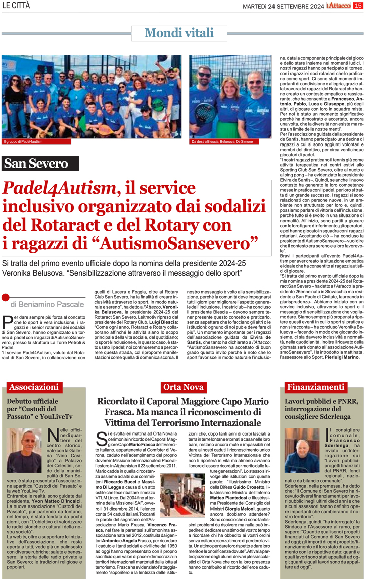 Evento Padel4Autism del Rotaract e del Rotary con i ragazzi di “AutismoSansevero”