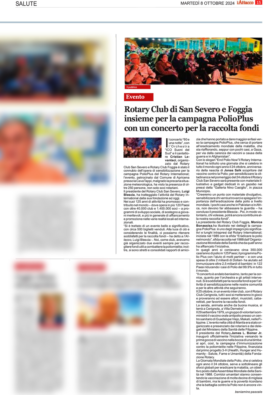 Rotary Club di San Severo e Foggia insieme per la campagna PolioPlus con un concerto per la raccolta fondi