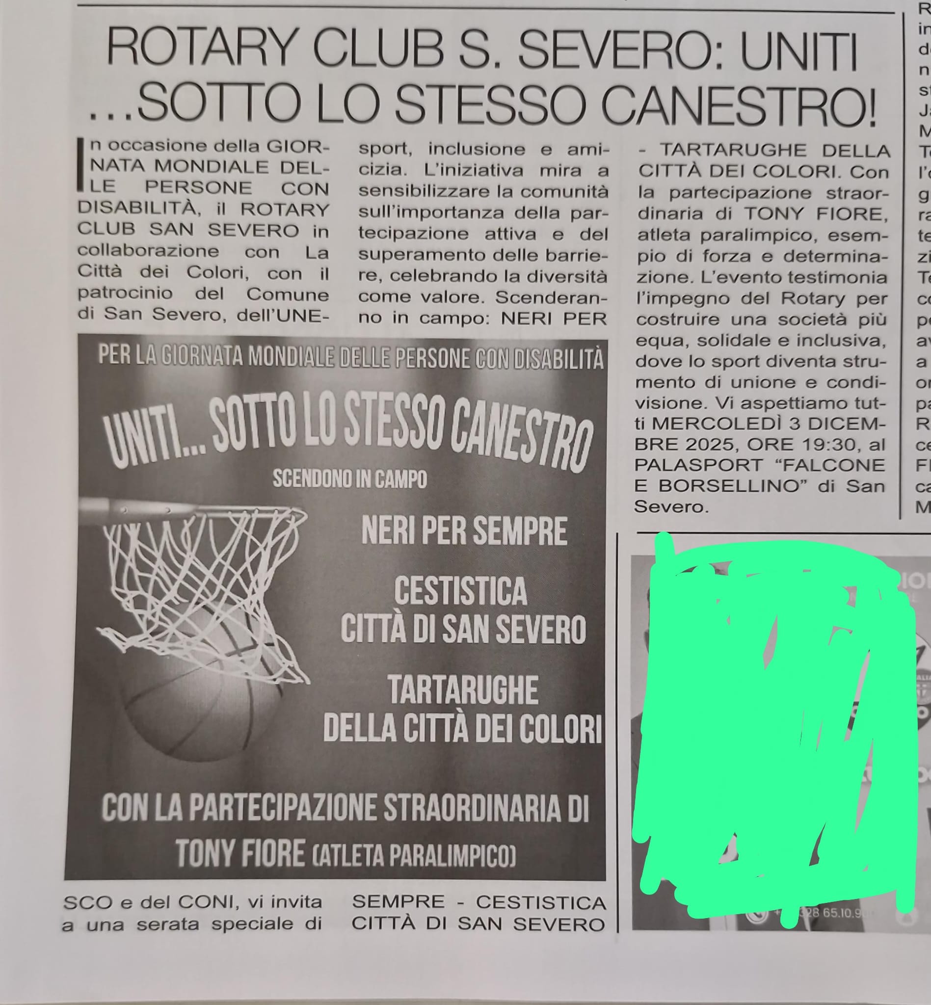 In occasione della GIORNATA MONDIALE DELLE PERSONE CON DISABILITÀ, il ROTARY CLUB SAN SEVERO in collaborazione con La Città dei Colori, con il patrocinio del Comune di San Severo, dell'UNESCO e del CONI, vi invita a una serata speciale di sport, inclusione e amicizia.